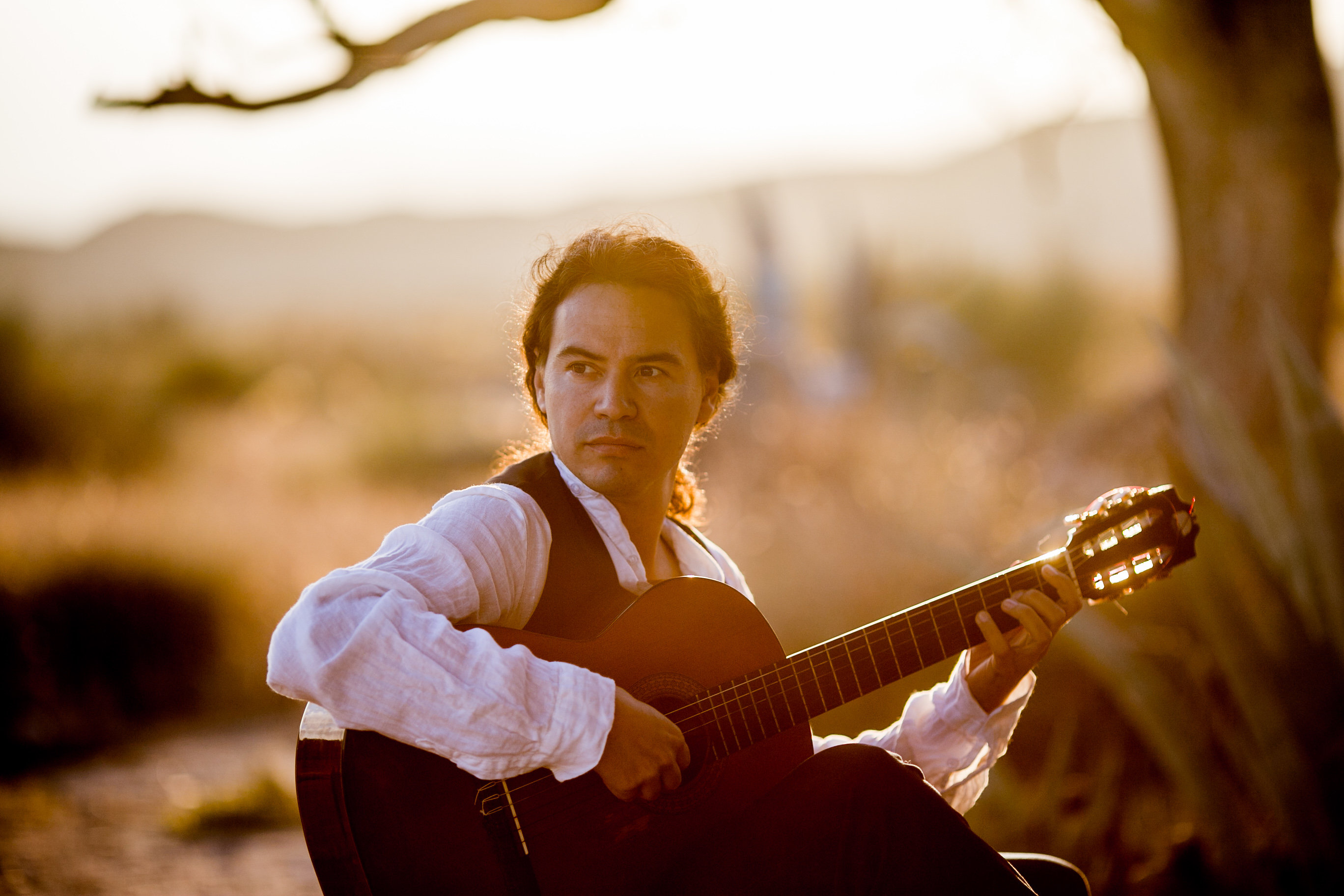 Con tan sólo una guitarra y el relato de historietas es capaz de embelesar al público y aficionarlos e introducirlos en el mundo de la guitarra española.